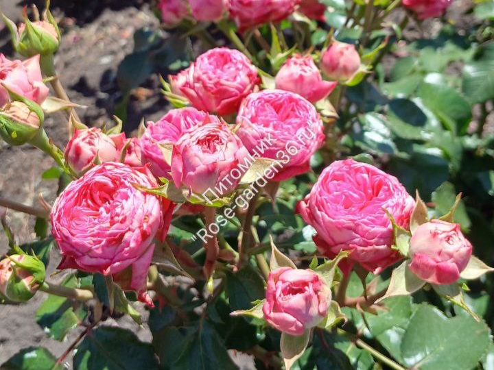 Темно-розовые с серебристым реверсом махровые цветки собраны в небольшие соцветия. Листва блестящая, зеленая. Отличная устойчивость к заболеваниям, цветение до заморозков.