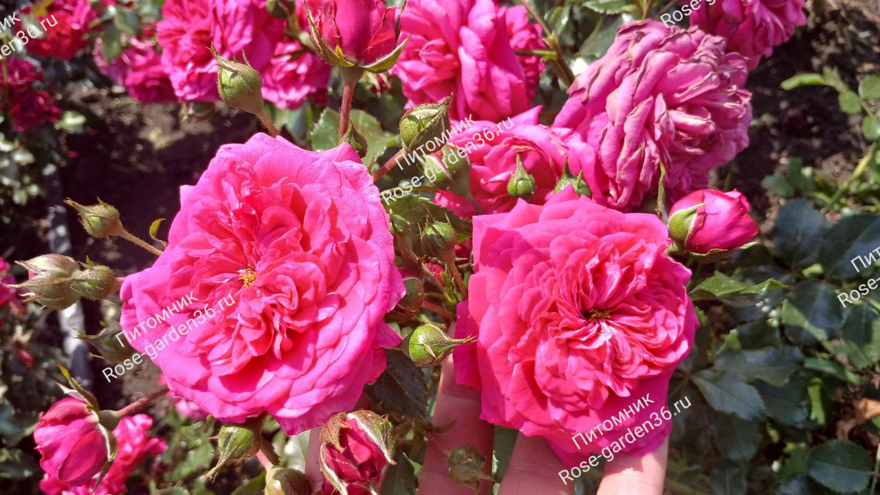 Сорт, очень устойчивый к заболеваниям, с прекрасным ароматом. Цветки ярко-розовые, густомахровые, в кистях по 6-8 шт. Листва темно-зеленая, густая, блестящая, средних размеров. Аромат очень сильный, фруктовый. Куст прямостоячий, ветвистый, до 2 м.